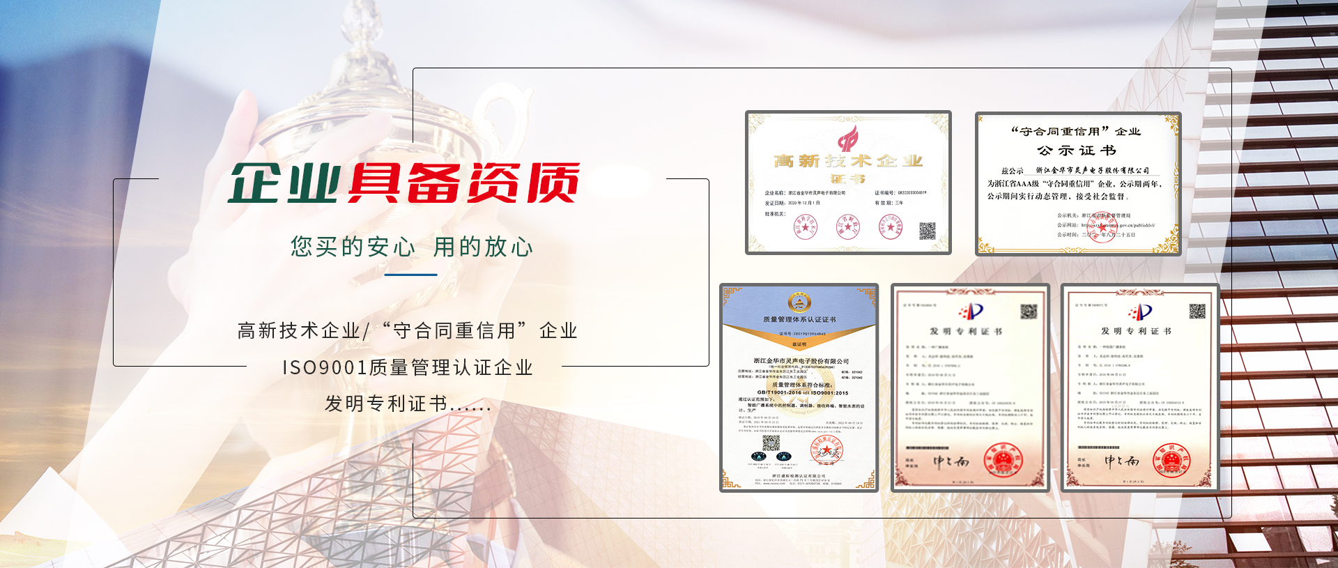 公司榮譽(yù):先后被認(rèn)定為國(guó)家高新技術(shù)企業(yè),浙江省高新技術(shù)企業(yè),浙江省工商業(yè)守合同重信用單位,浙江省科技型中小企業(yè),金華市專(zhuān)利示范企業(yè),金華市誠(chéng)信民營(yíng)企業(yè)等榮譽(yù)。