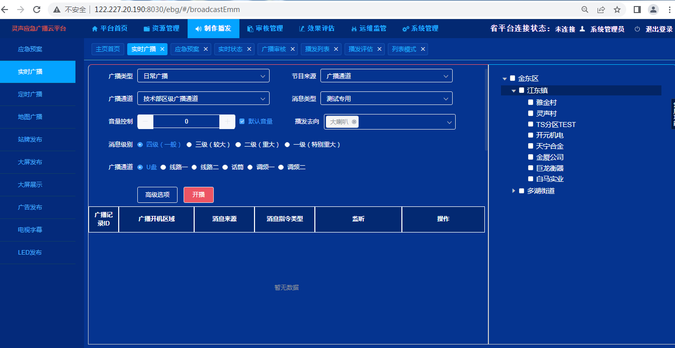 對接上級應急廣播平臺信息,應急消息的接入/展示/查詢/執(zhí)行